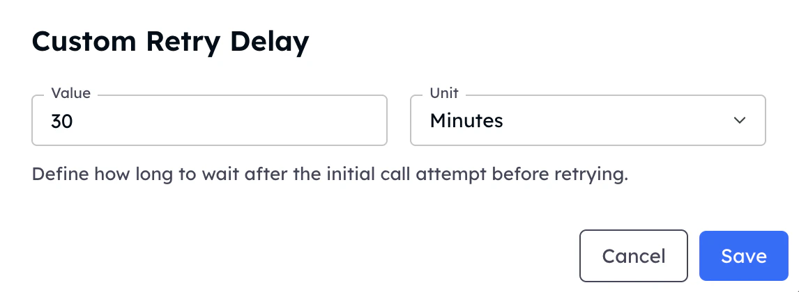 If the wait time expires while your campaign is paused or outside its daily operating hours (e.g., late at night), the system automatically rolls over and schedules the retry to trigger at the beginning of the next available operating window for that campaign.