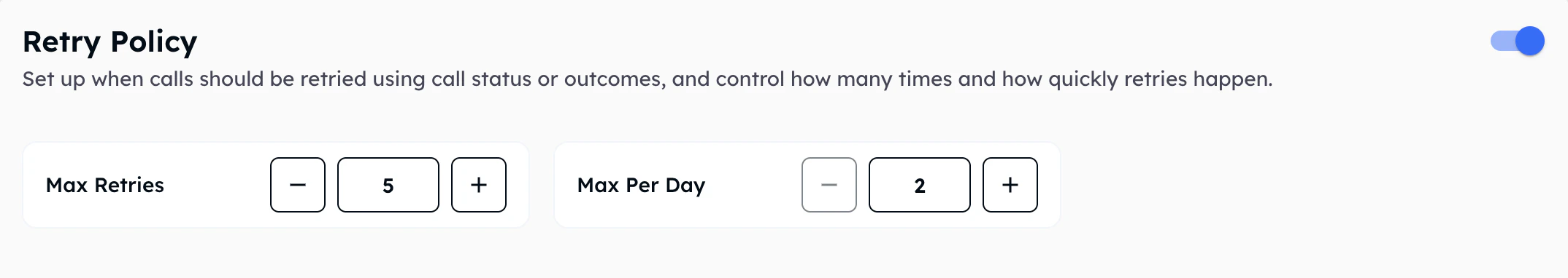 To protect your contacts from being overwhelmed, the Retry Policy requires you to set strict upper limits. These limits act as a global safeguard across all your rules.